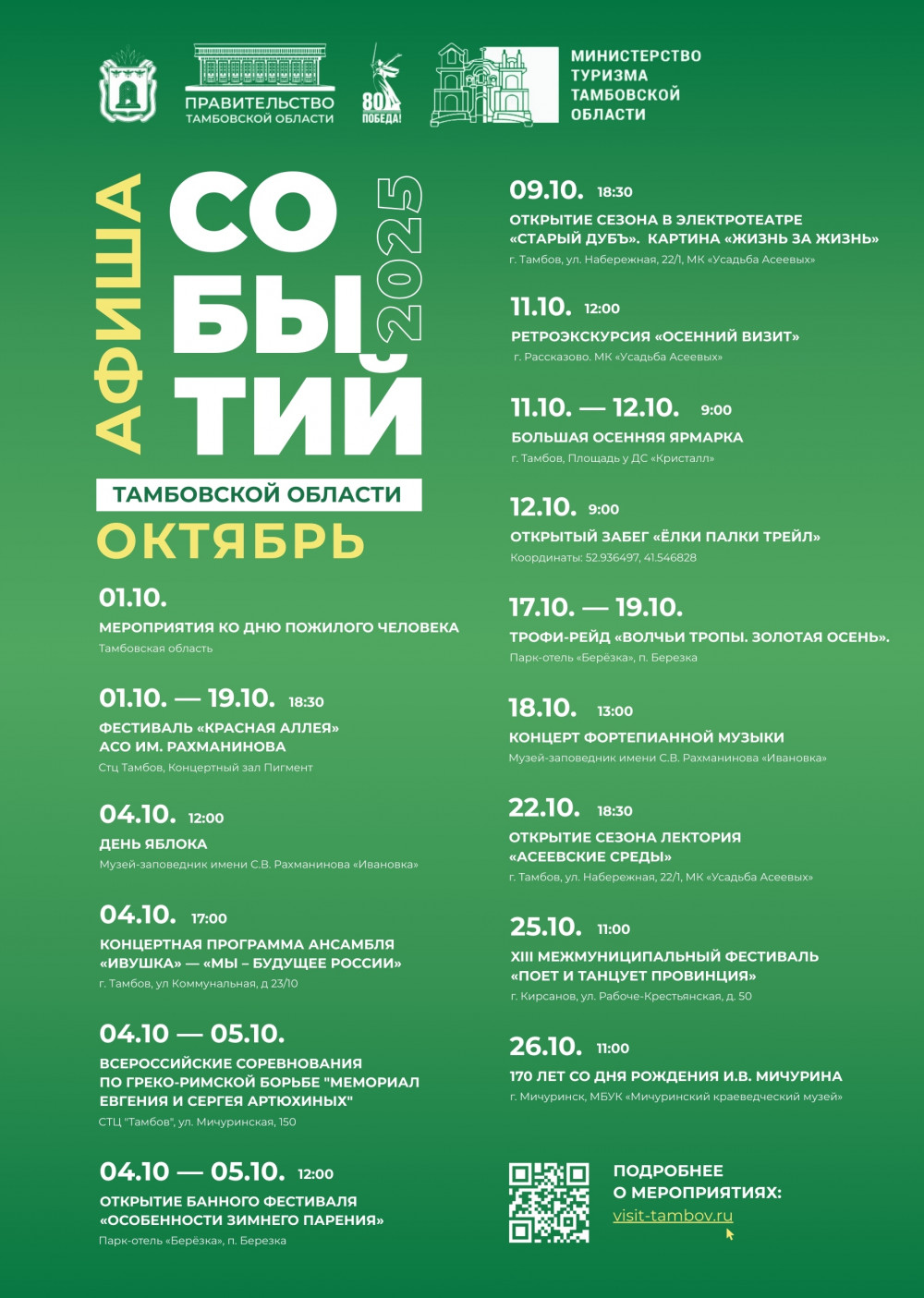 24.10 | 12.00 | Гала- концерт межрегионального фестиваля конкурса «Сосновские просторы-2025» | Муниципальное бюджетное учреждение культуры «Сосновский центральный Дом культуры» | Вход платный100 руб., действует Пушкинская карта |